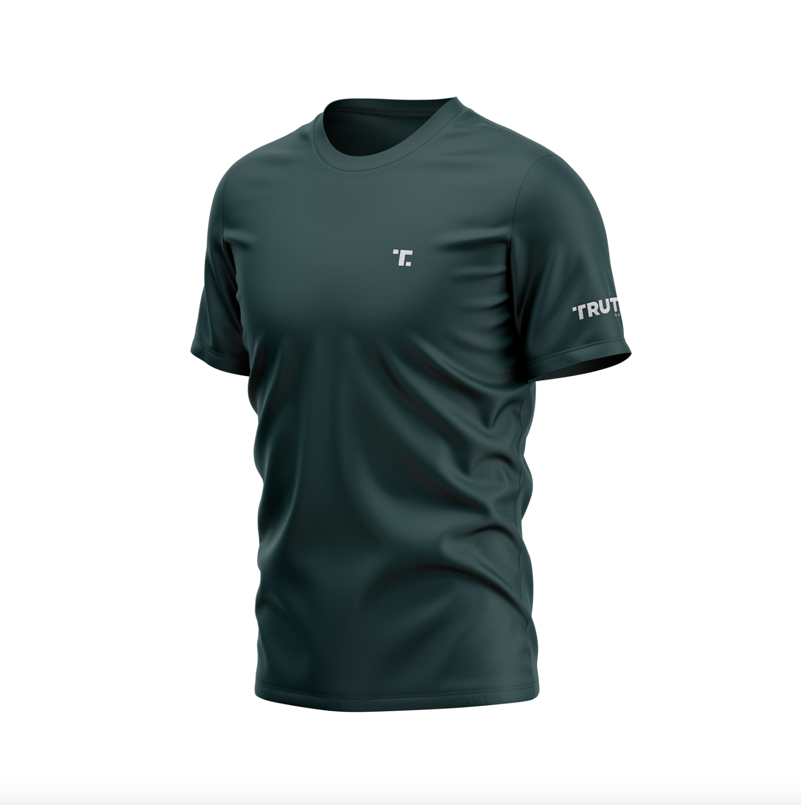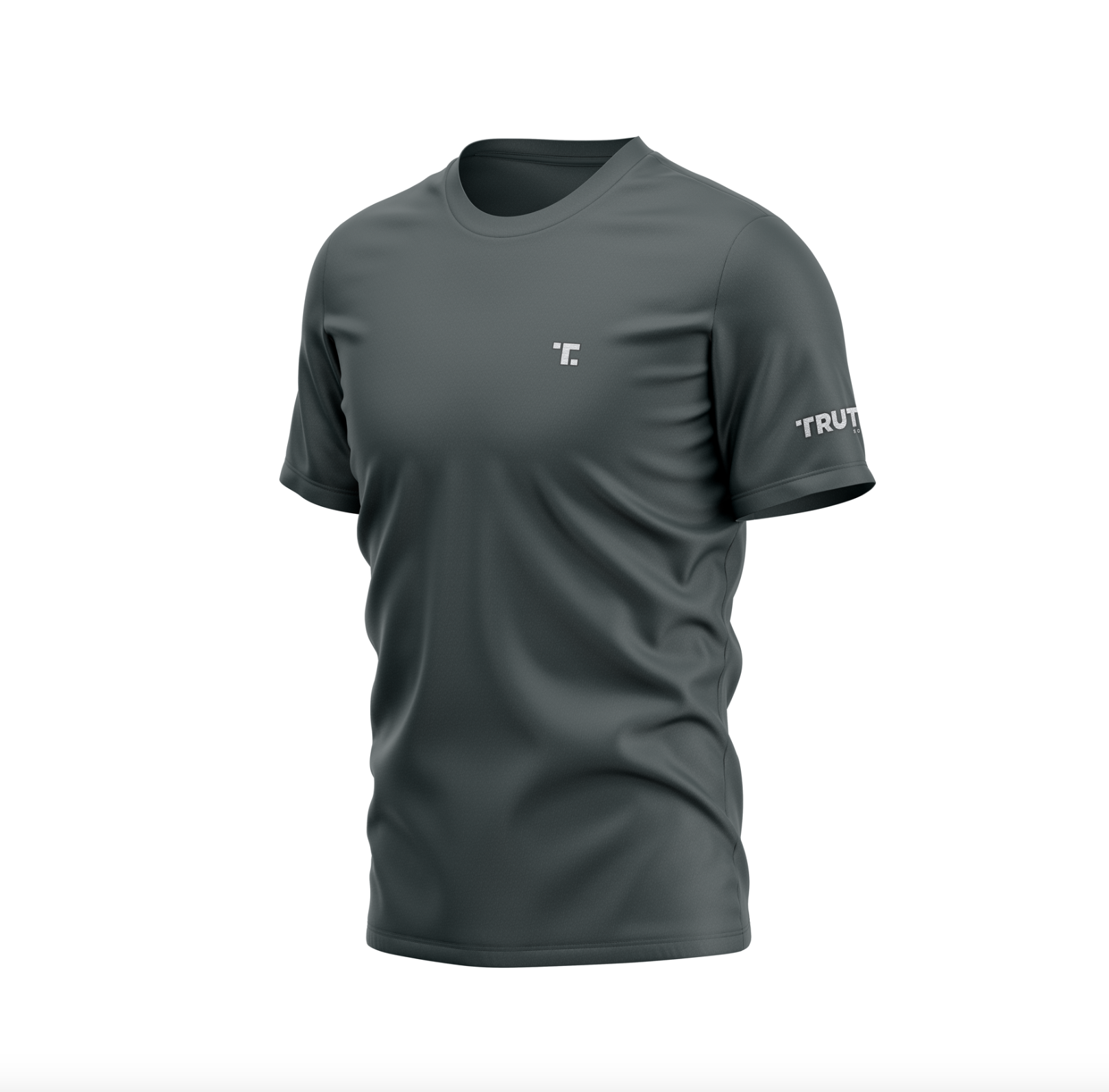This T-shirt features the Truth Social “T” logo at the left chest and the full Truth Social logo at the sleeve.