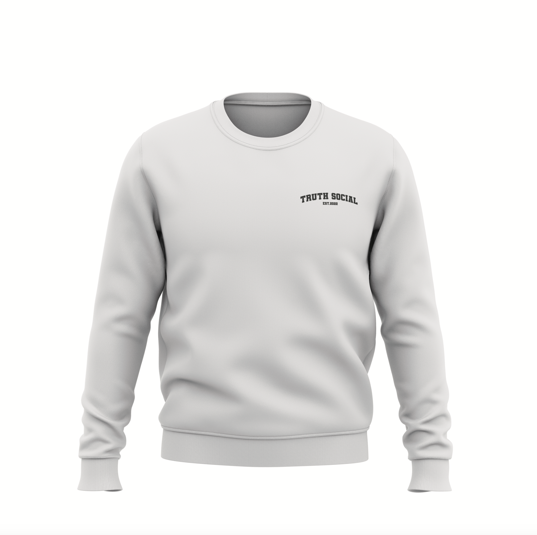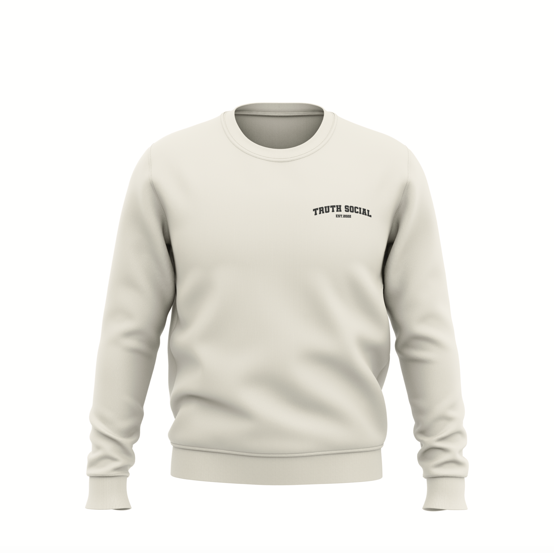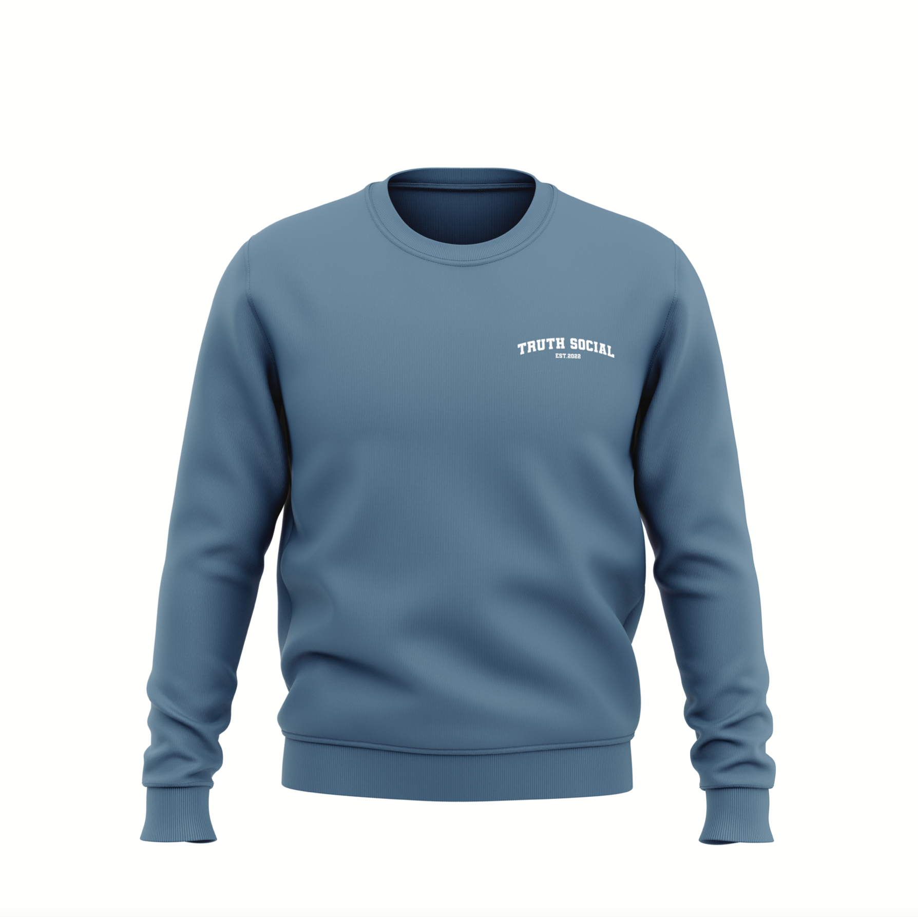 A timeless crewneck sweatshirt with a varsity-inspired “Truth Social Est. 2022” printed at the left chest.