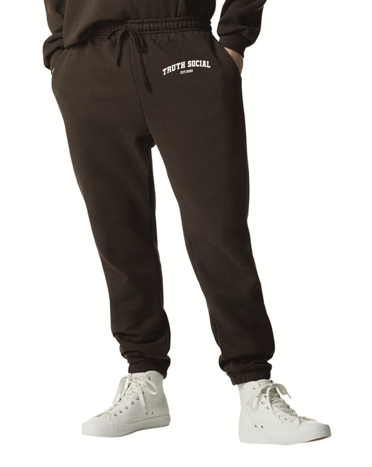 These classic jogger-style sweatpants have an elasticated drawstring waist, elasticated hem, and a varsity-inspired “Truth Social Est. 2022” printed at the hip.